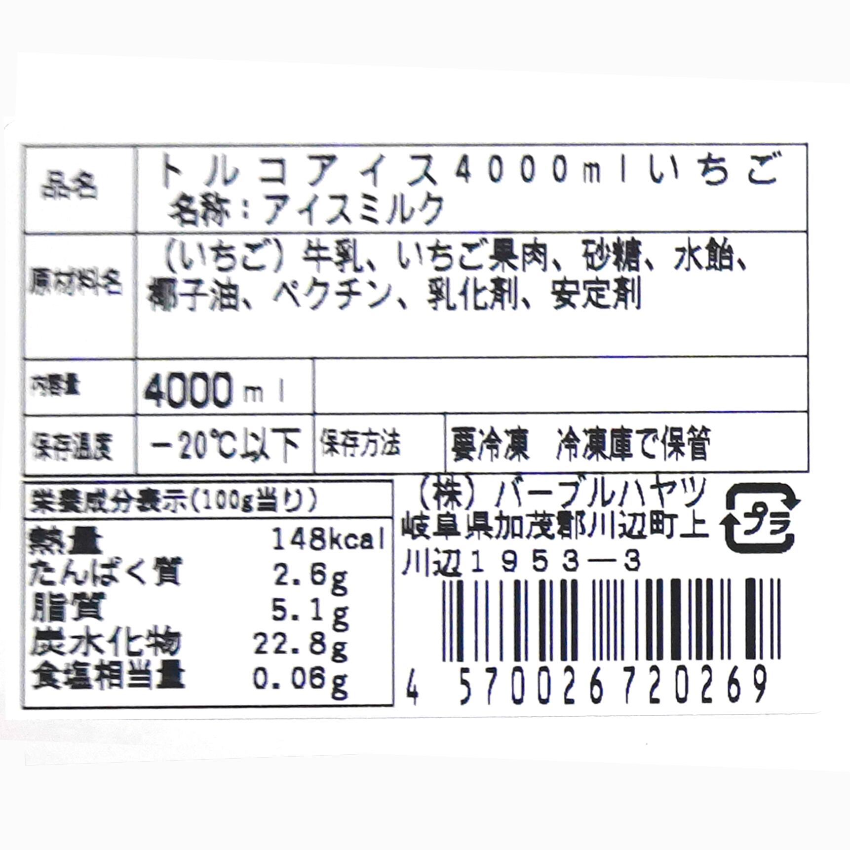 業務用トルコアイス(いちご)4000ml×4本(いちご)【送料込】